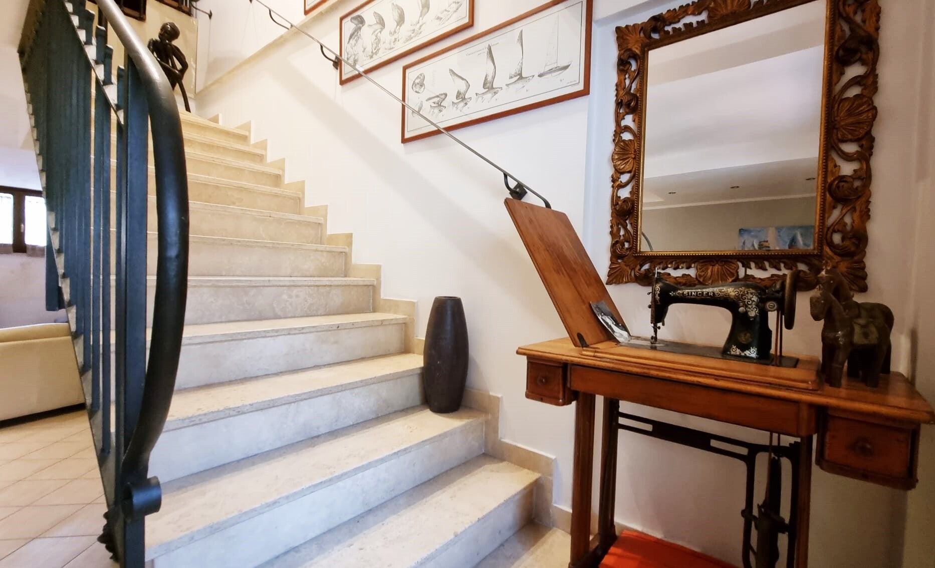Una scala in ferro battuto e marmo conduce verso la zona notte, dove troviamo tre camere da letto e un bagno con box doccia e finestra, la camera al centro è dotata di accesso al giardino verde e recintato, con siepi per la privacy, ampio circa 160mq.