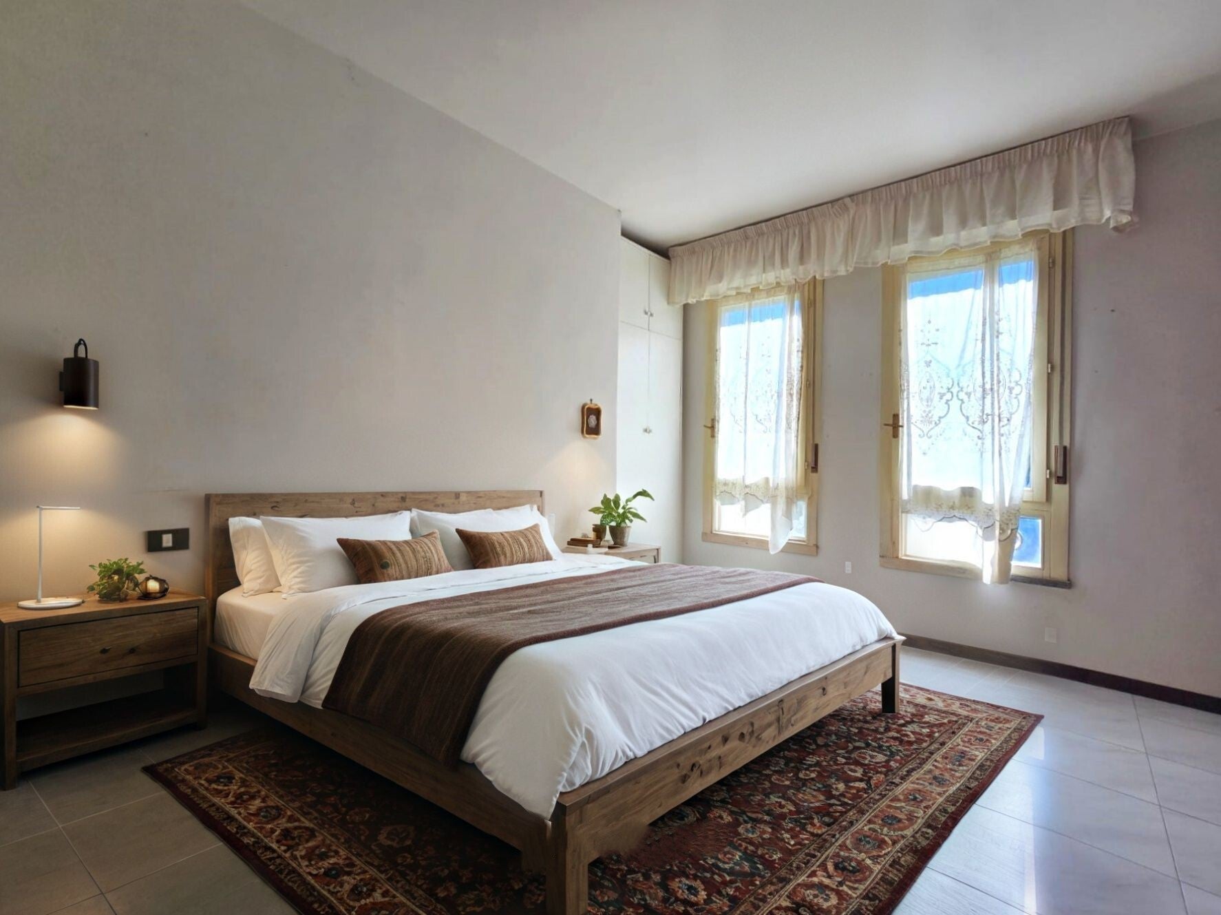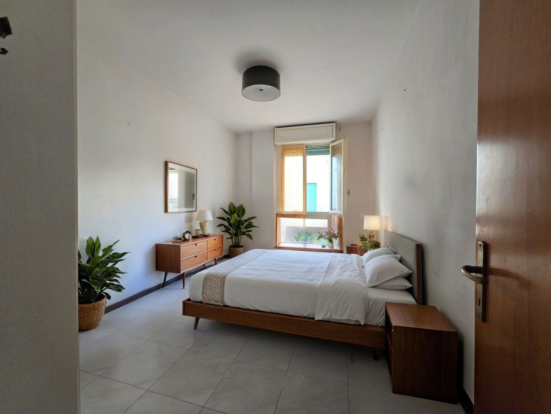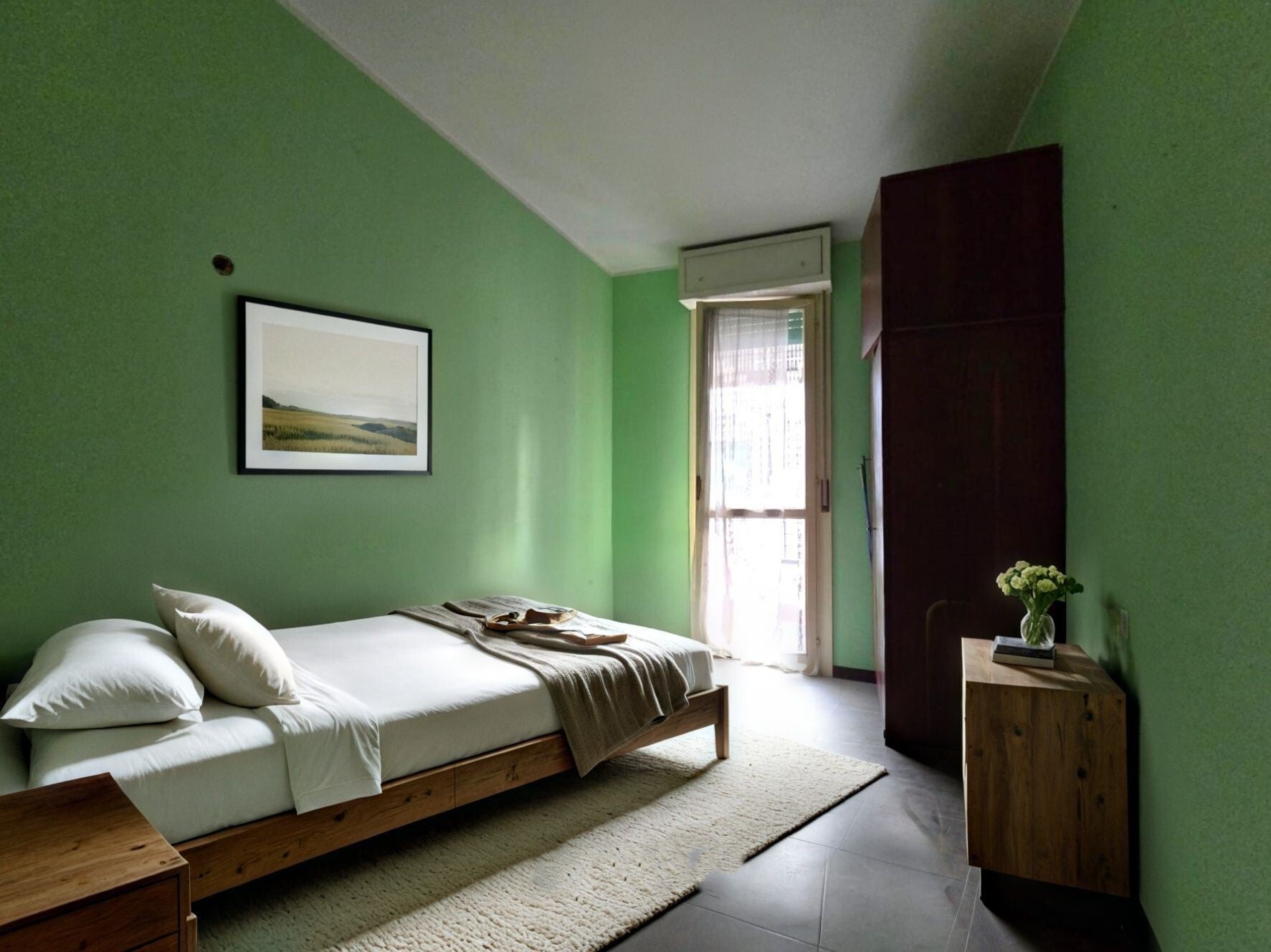 - Sulla sinistra invece, ci avviamo verso la zona notte, dove sono presenti due camere da letto singole, di cui una con terrazzo, una camera matrimoniale e il bagno con box doccia.