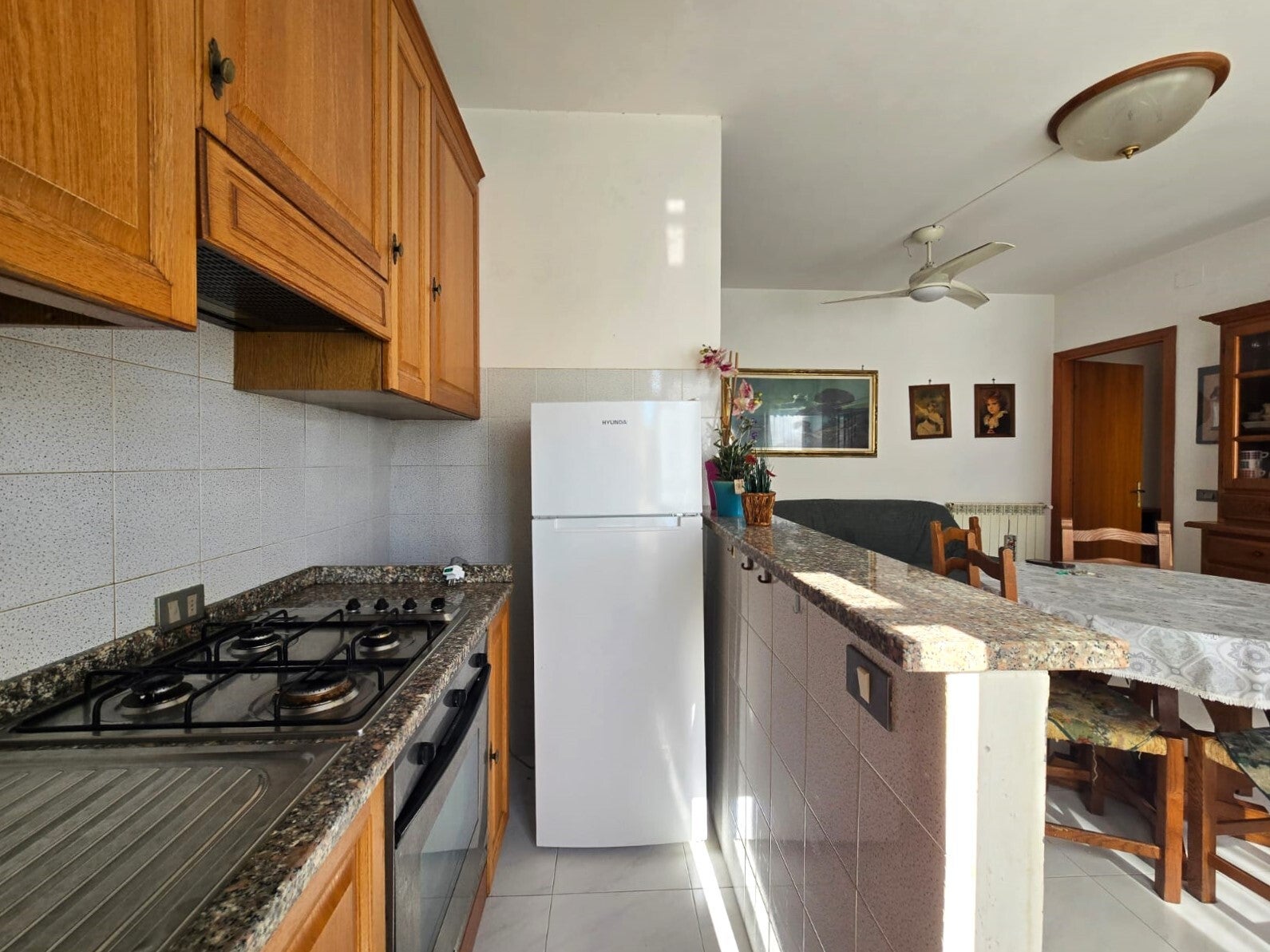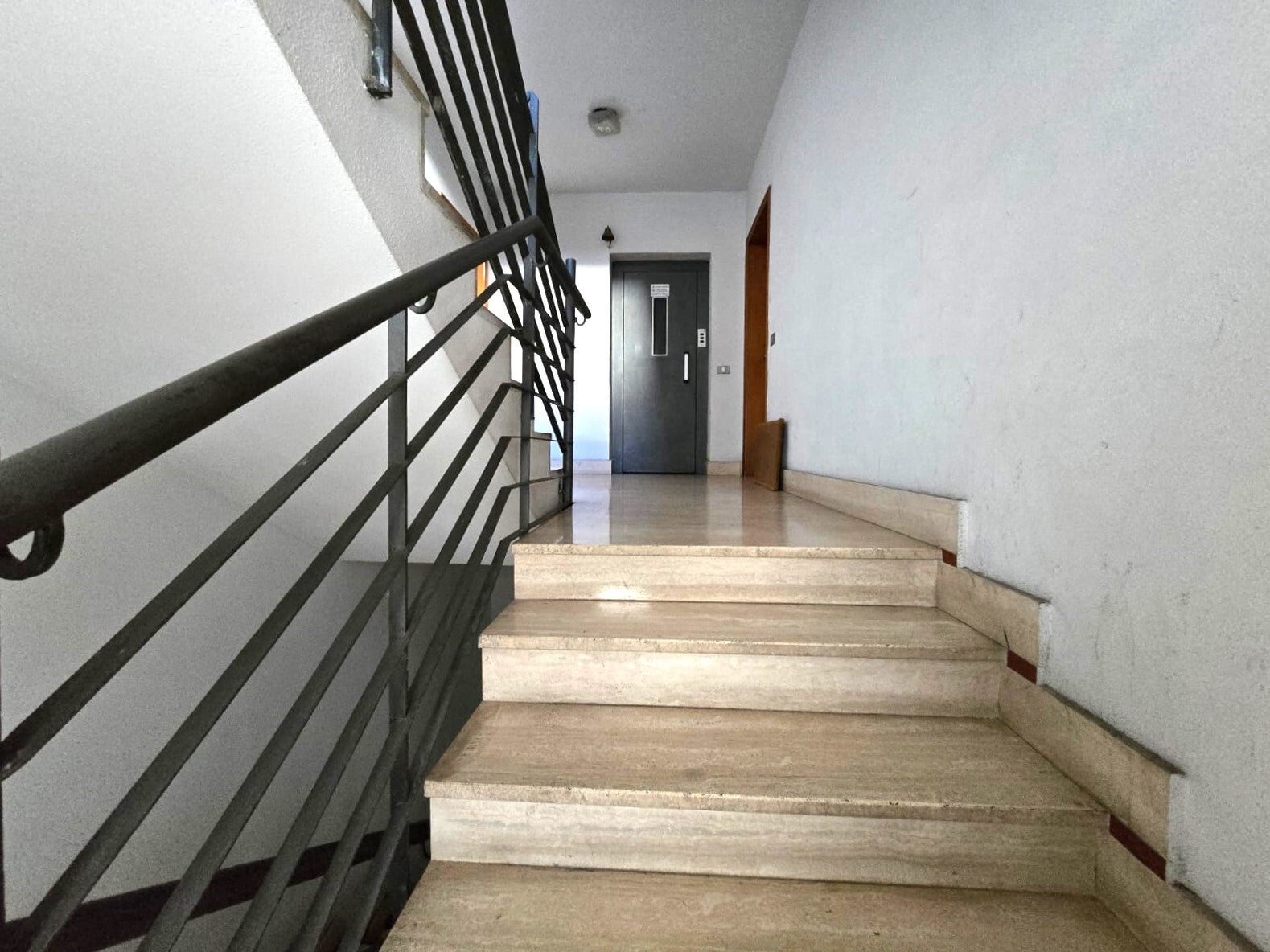 Entriamo dal portoncino verso un disimpegno che divide due ambienti della casa;