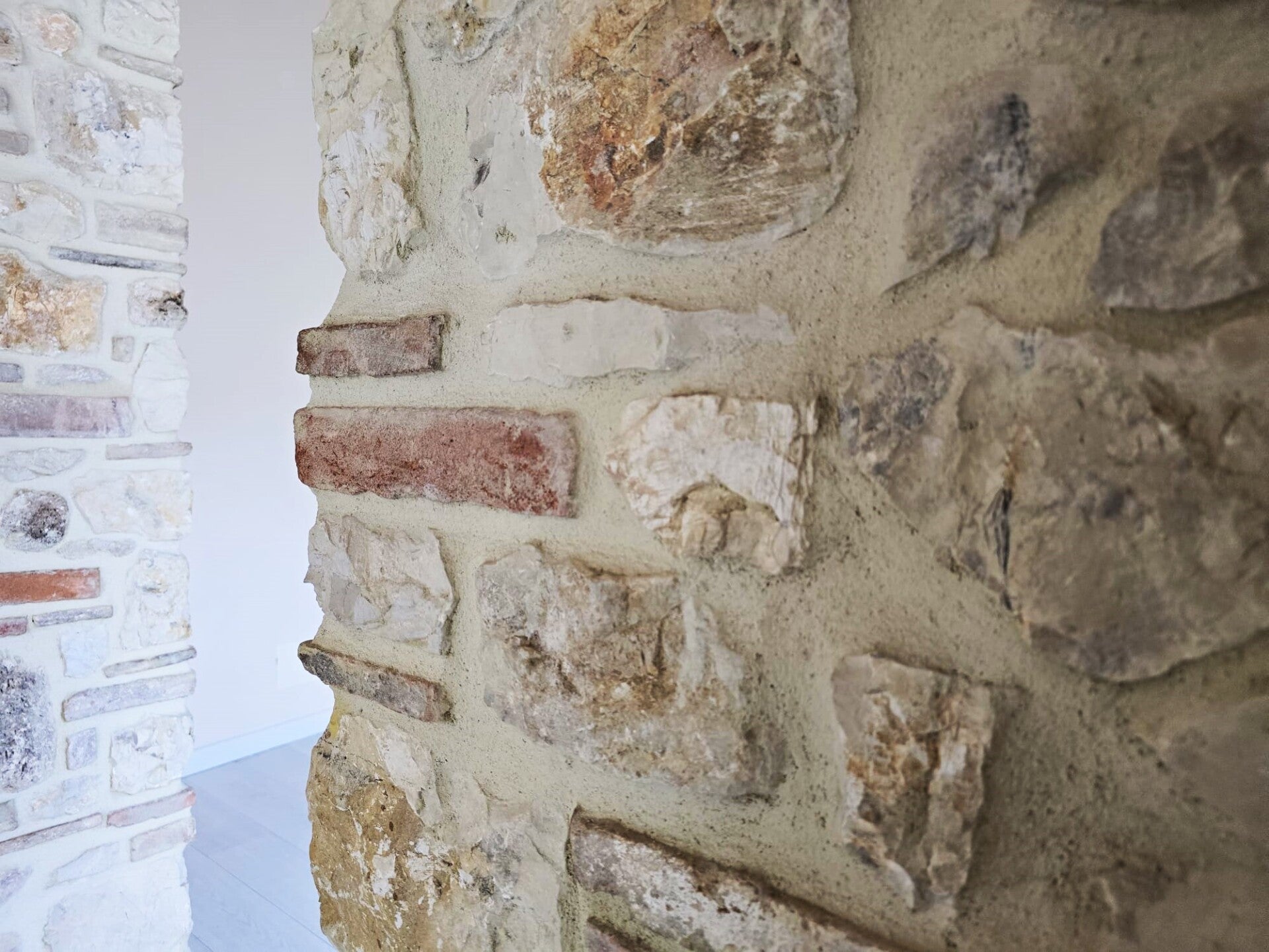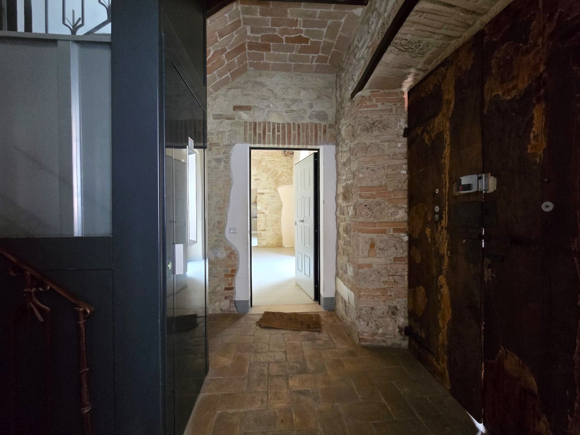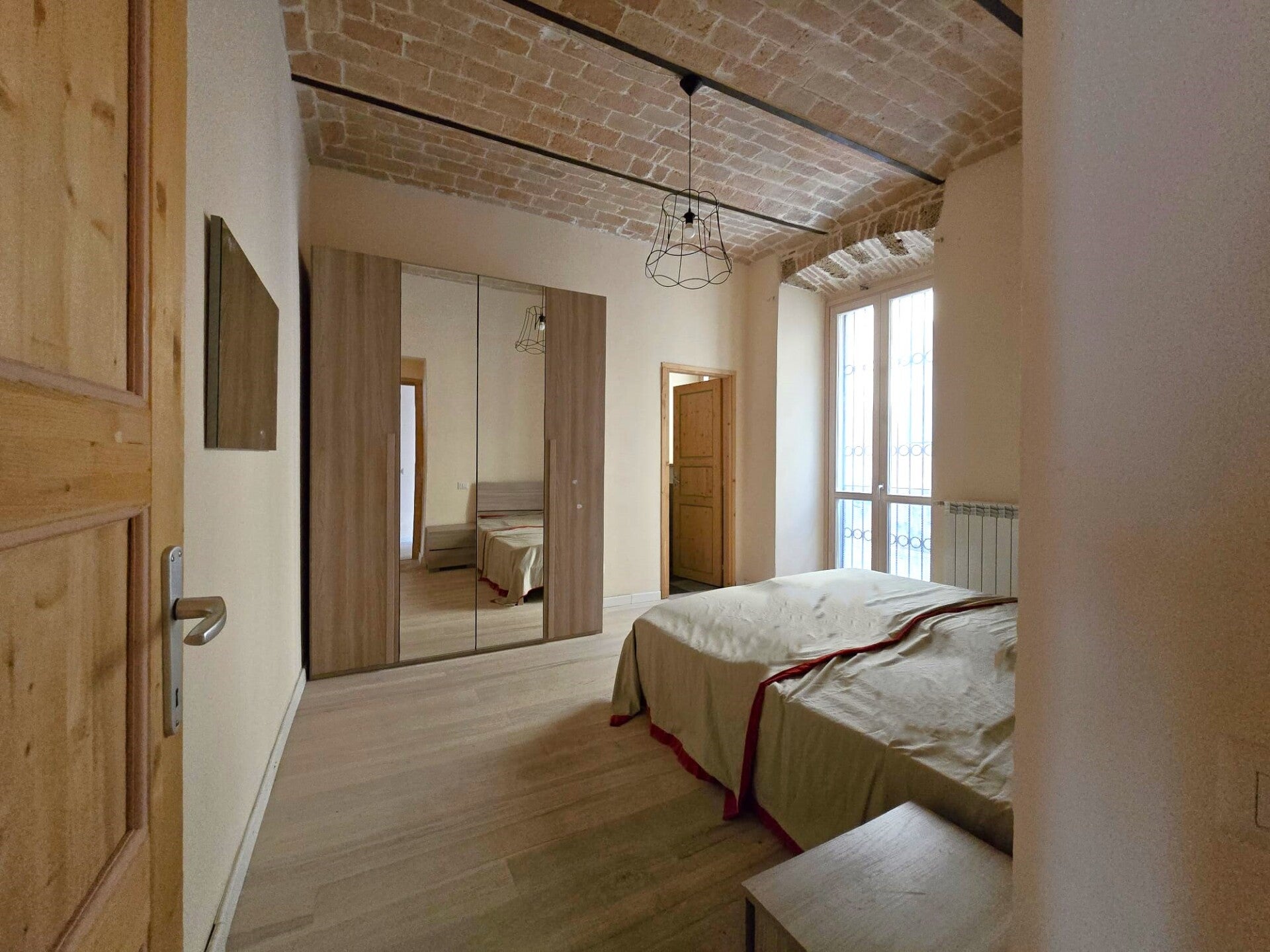 La grande bellezza dell'immobile sono gli alti soffitti a volta con mattoncini a vista un dettaglio che si sposa con le nuove porte in legno, con gli archi in pietra e in mattoncini sopra a porte e finestre.