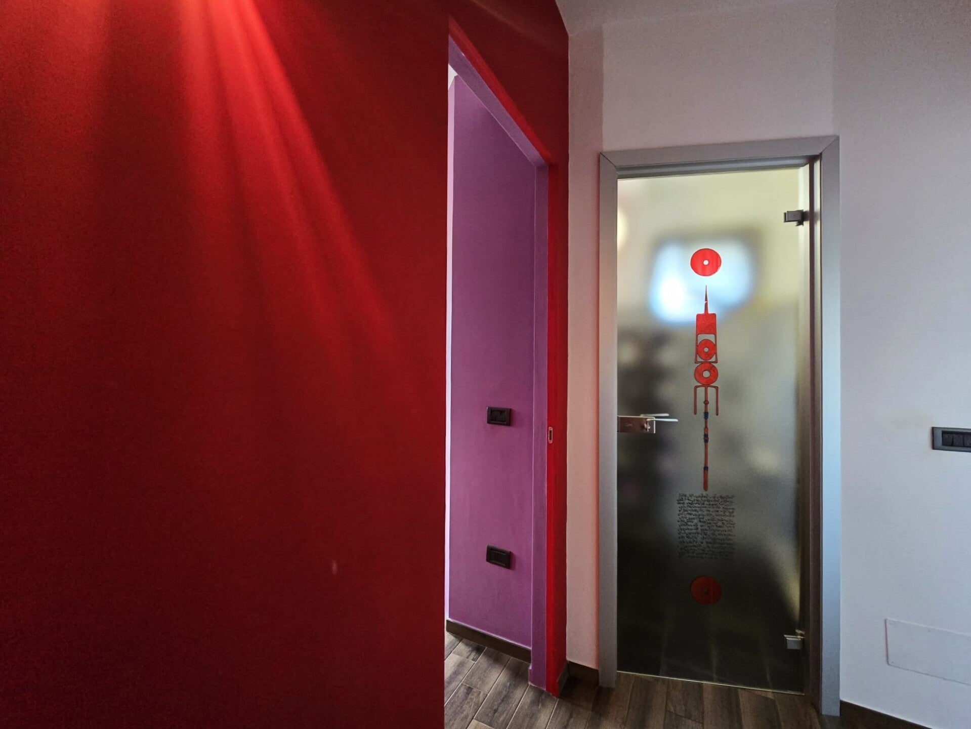 La zona notte rimane sapientemente divisa dalla zona giorno grazie ad un disimpegno al quale si accede da una particolare porta in vetro murano scorrevole, qui troviamo 3 camere da letto matrimoniali e due bagni, entrambi con finestra e con doccia.