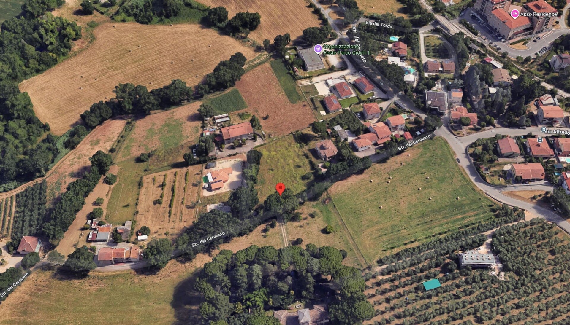 Il terreno, immerso nel verde, tra ville e villette e con accesso da strada asfaltata, si trova in Via del Cerqueto.