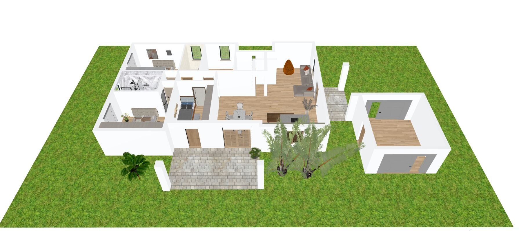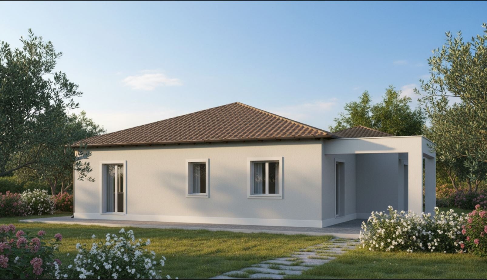 Il progetto permette di edificare un’abitazione di 170m2 lordi commerciali tutti su unico piano più i portici di pertinenza esterna di 30m2, costruita in classe di sostenibilità ARPA “A”.