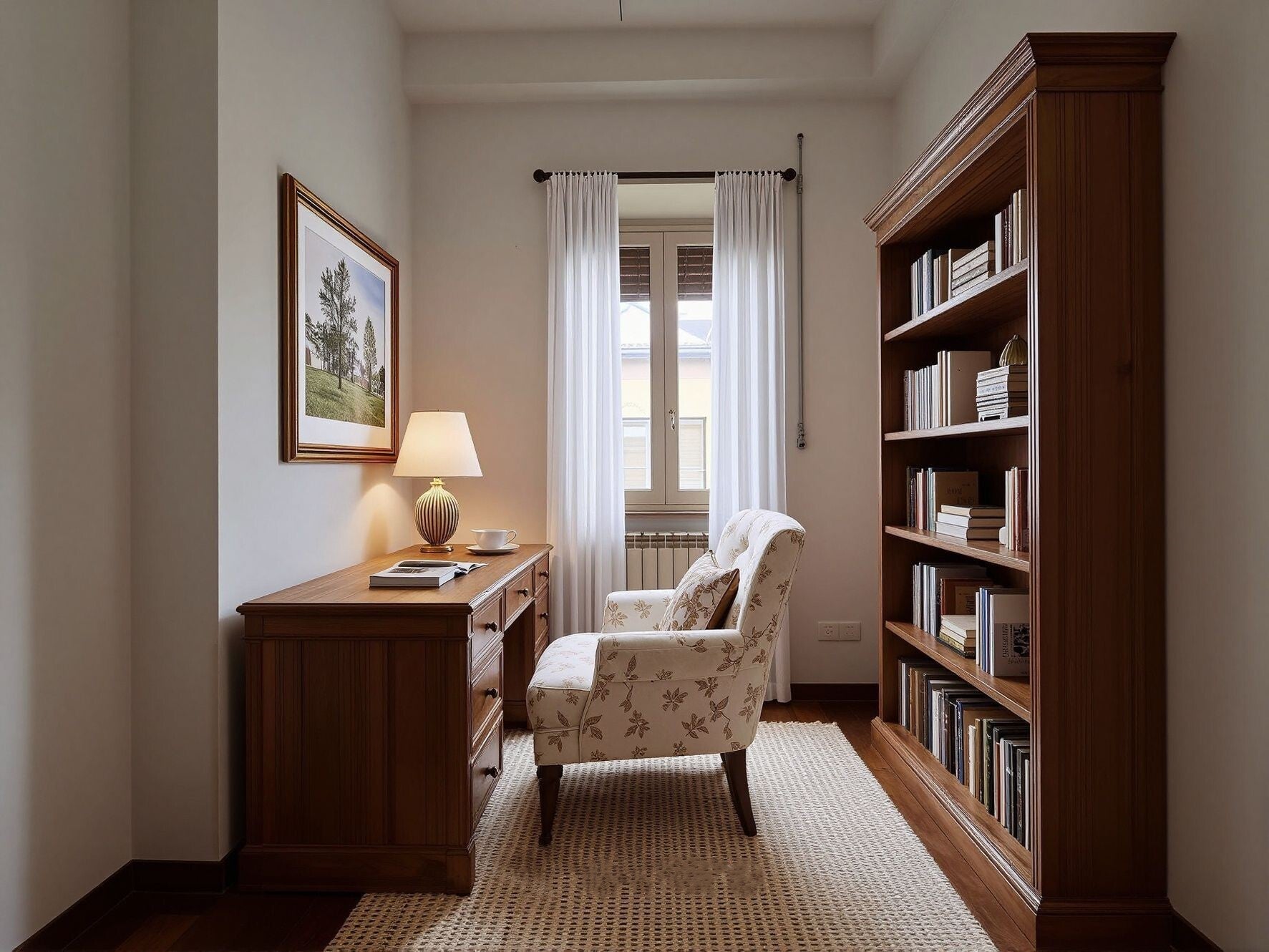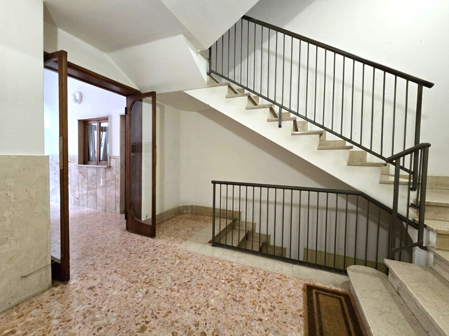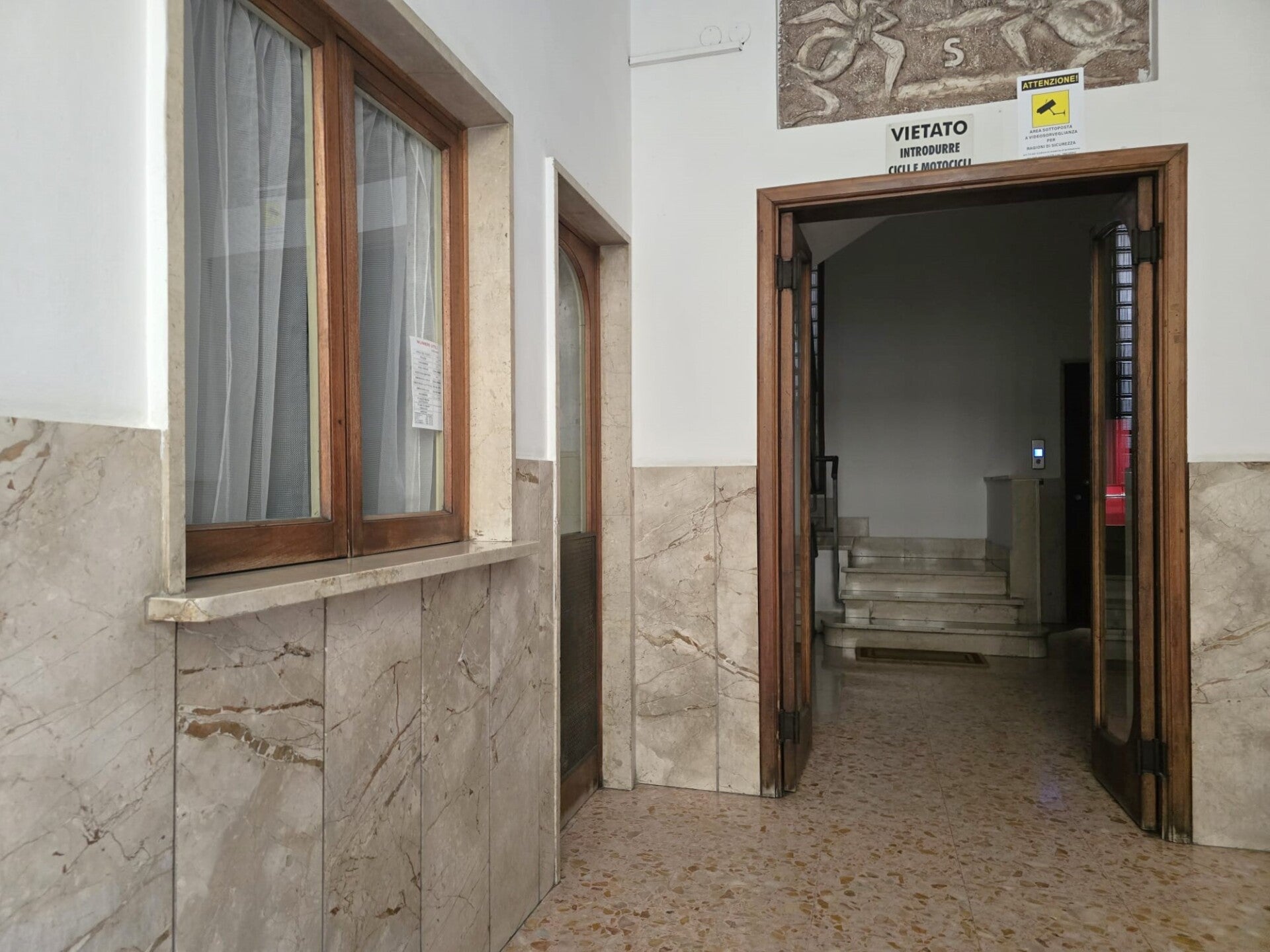 L’appartamento, ristrutturato nel 2018, è composto da una luminosa zona giorno open space con porta finestra verso il terrazzo, tramite un’arcata accediamo al disimpegno verso le due camere matrimoniali, lo studio e i doppi servizi di cui uno con doccia e finestra e l’altro con impianto d’aspirazione e attacco per la lavatrice.
