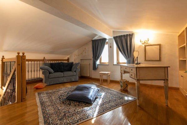 Proseguendo nella zona notte troviamo due camere matrimoniali con soppalco, due bagni con finestra e box doccia e la camera padronale dotata di bagno en-suite e di accessoriata cabina armadio, con mobilio di pregio su misura.