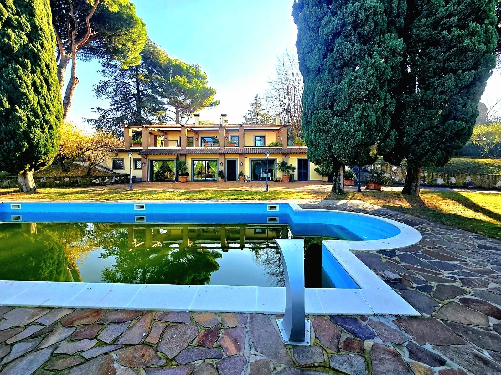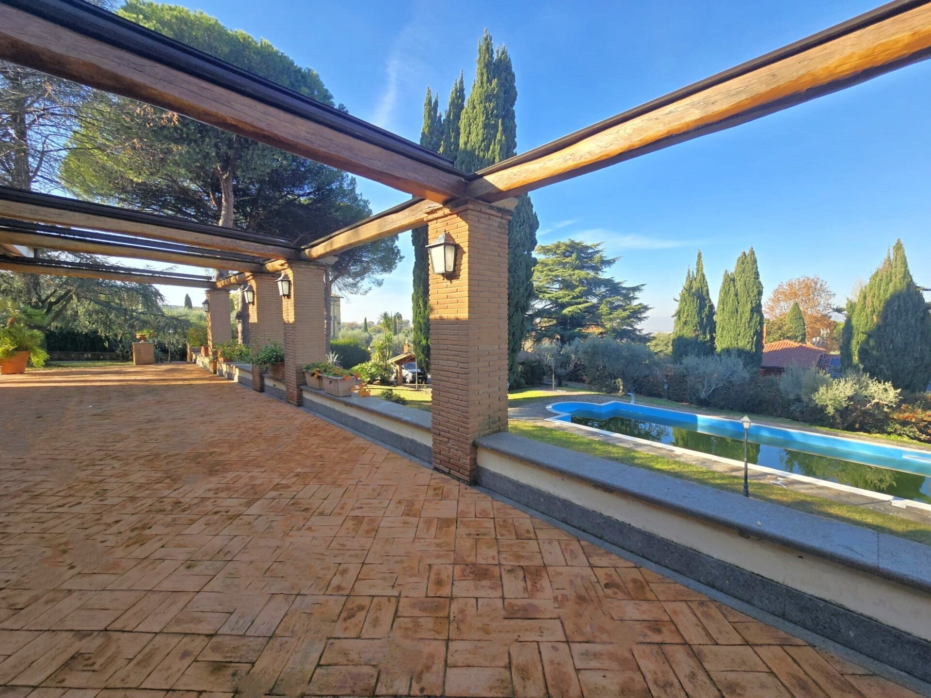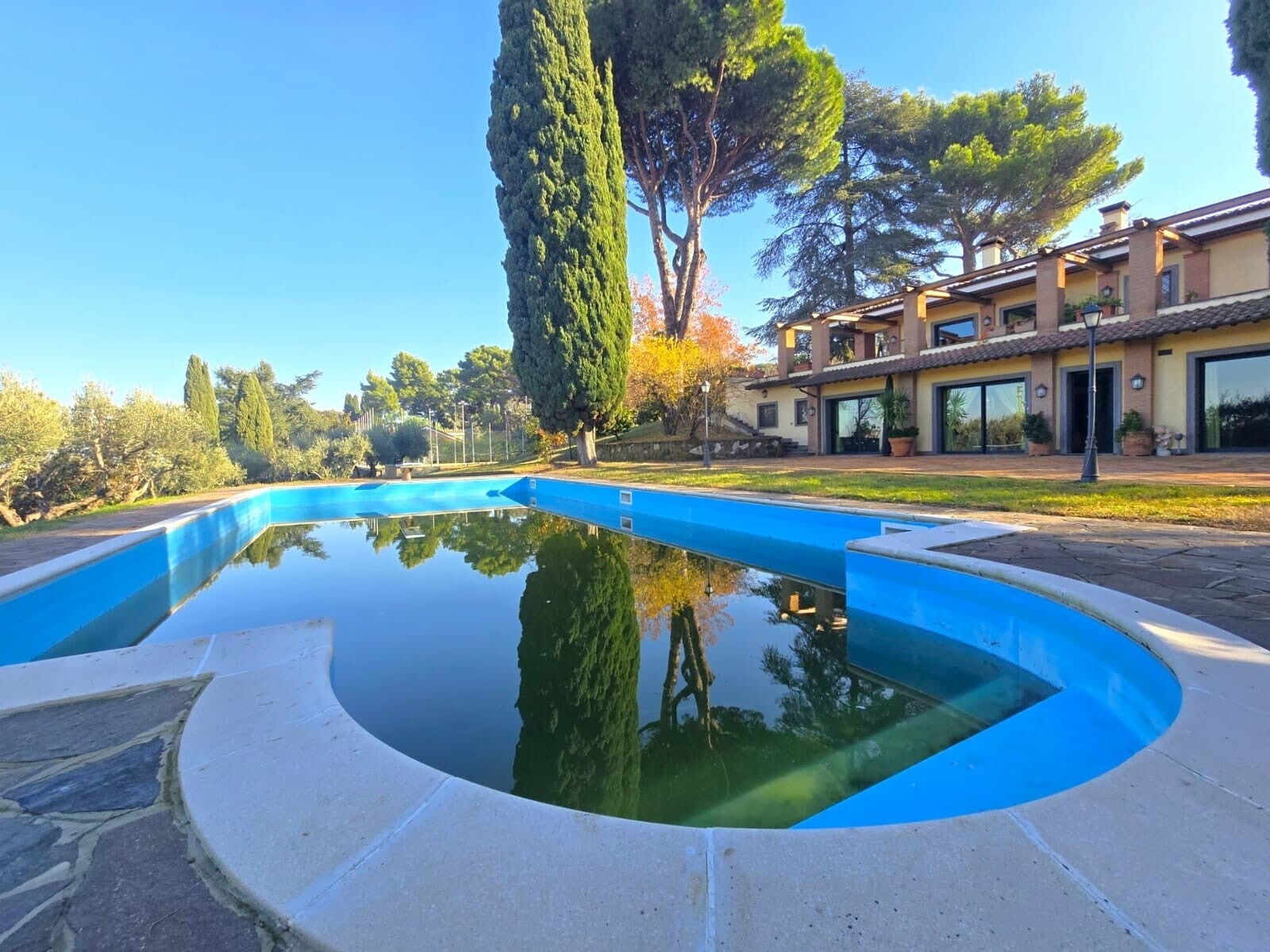 Parliamo di una villa indipendente, totalmente rinnovata nei primi anni 2000, tra Frascati e Monte Porzio Catone. Ricca di fascino, abbracciata da un curato parco privato di 6000mq con alberi secolari, piscina e campo sportivo.