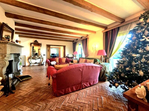 Accediamo alla proprietà dal cancello carrabile verso un viale in porfido arricchito da maestosi alberi sempre verdi, da qui si apre la visuale verso l’imponente villa che si sviluppa su due livelli; al piano terra dall’ingresso proseguiamo verso la zona giorno, composta da un salone doppio con camino e grandi vetrate con affaccio verso la piscina. Allo stesso piano troviamo una sala da pranzo, una rustica cucina in muratura con forno a legna, una camera con bagno en-suite pensata per gli ospiti, il vano lavanderia e un bagno. Questa piano è perfetto per vivere la famiglia, per fare feste con gli amici e ricevimenti per gli eventi importanti della vita.