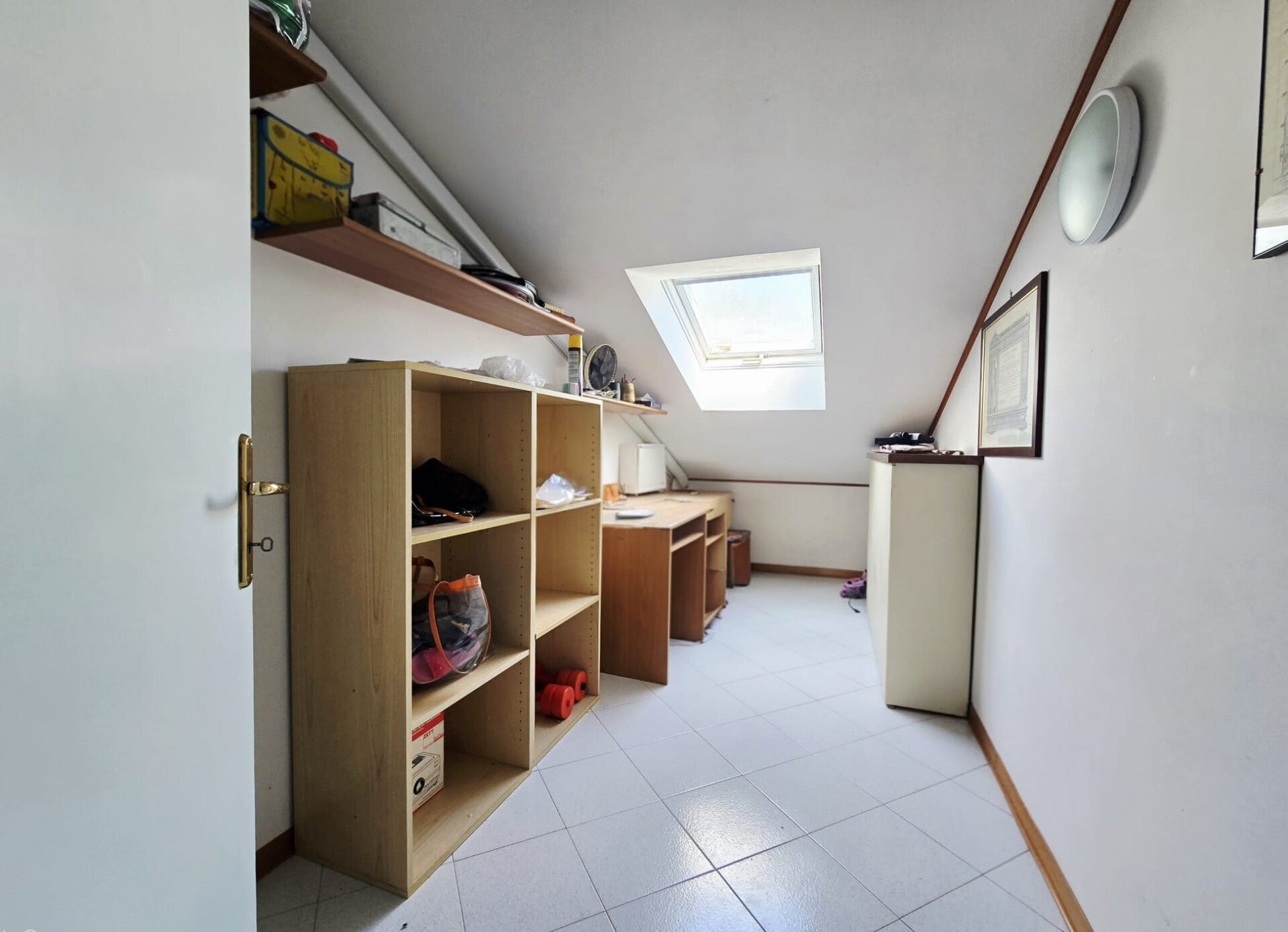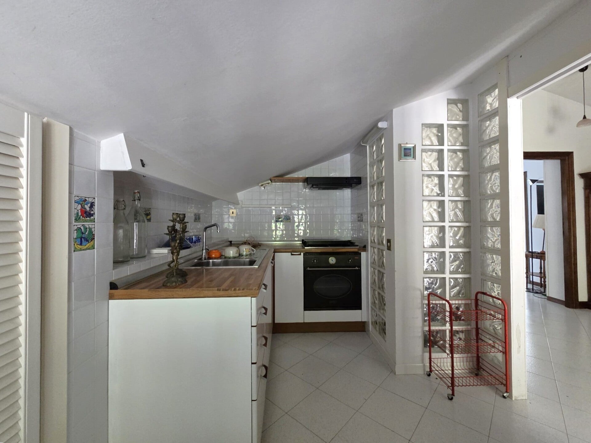 Al piano mansarda si trova il secondo appartamento che si raggiunge tramite una scala a chiocciola interna oppure da ingresso indipendente dall’esterno. Questo appartamento è stato totalmente rinnovato introno ai primi anni 2000 ed è composto da soggiorno con angolo cottura e uscita sul terrazzo abitabile, due camere da letto matrimoniali, uno studio e un bagno con vasca.