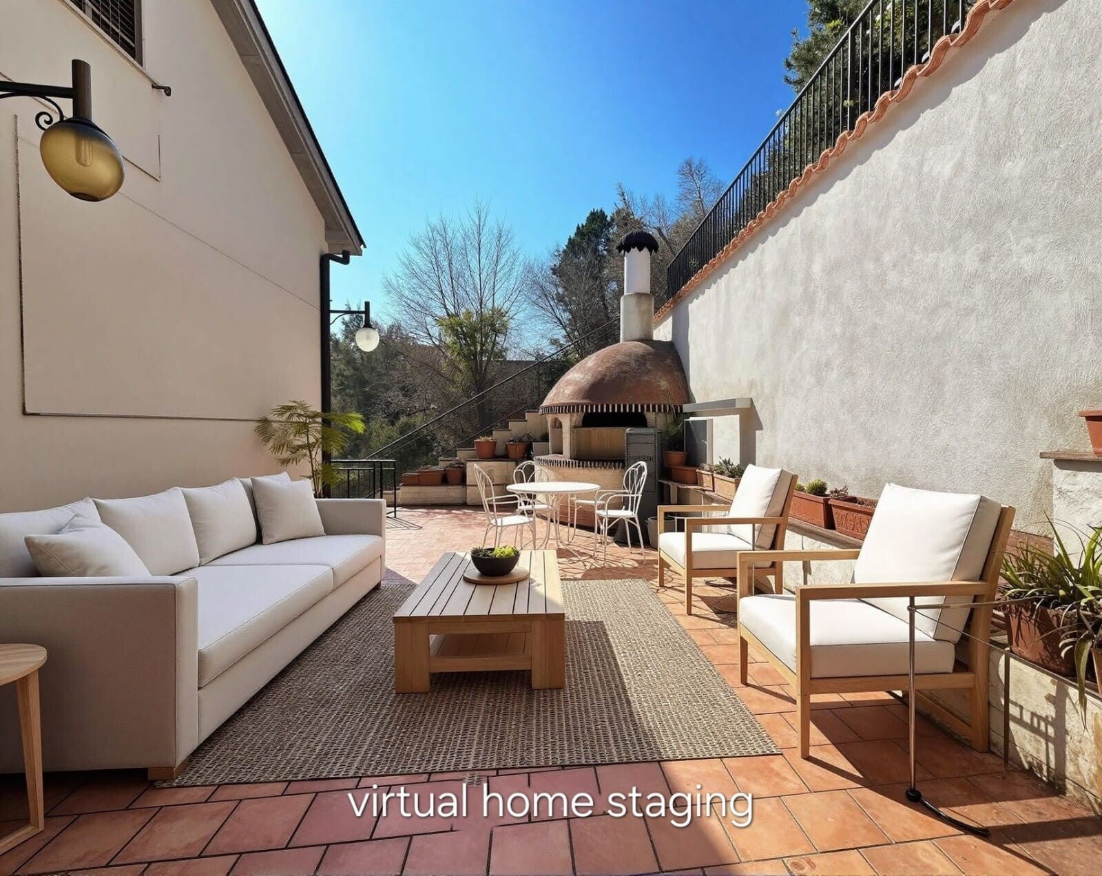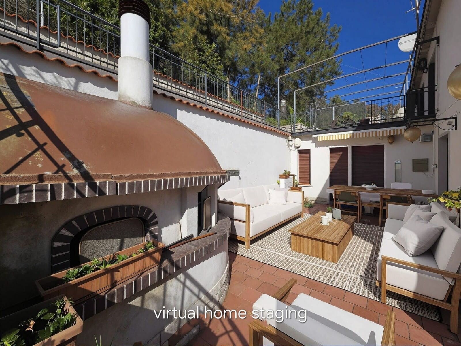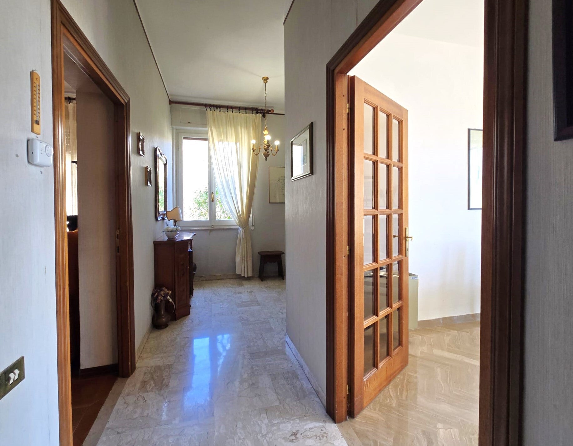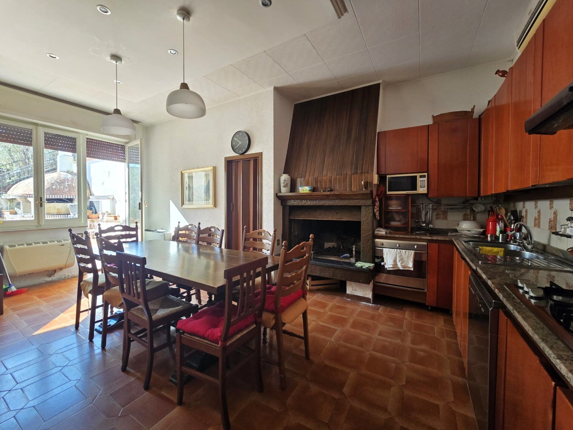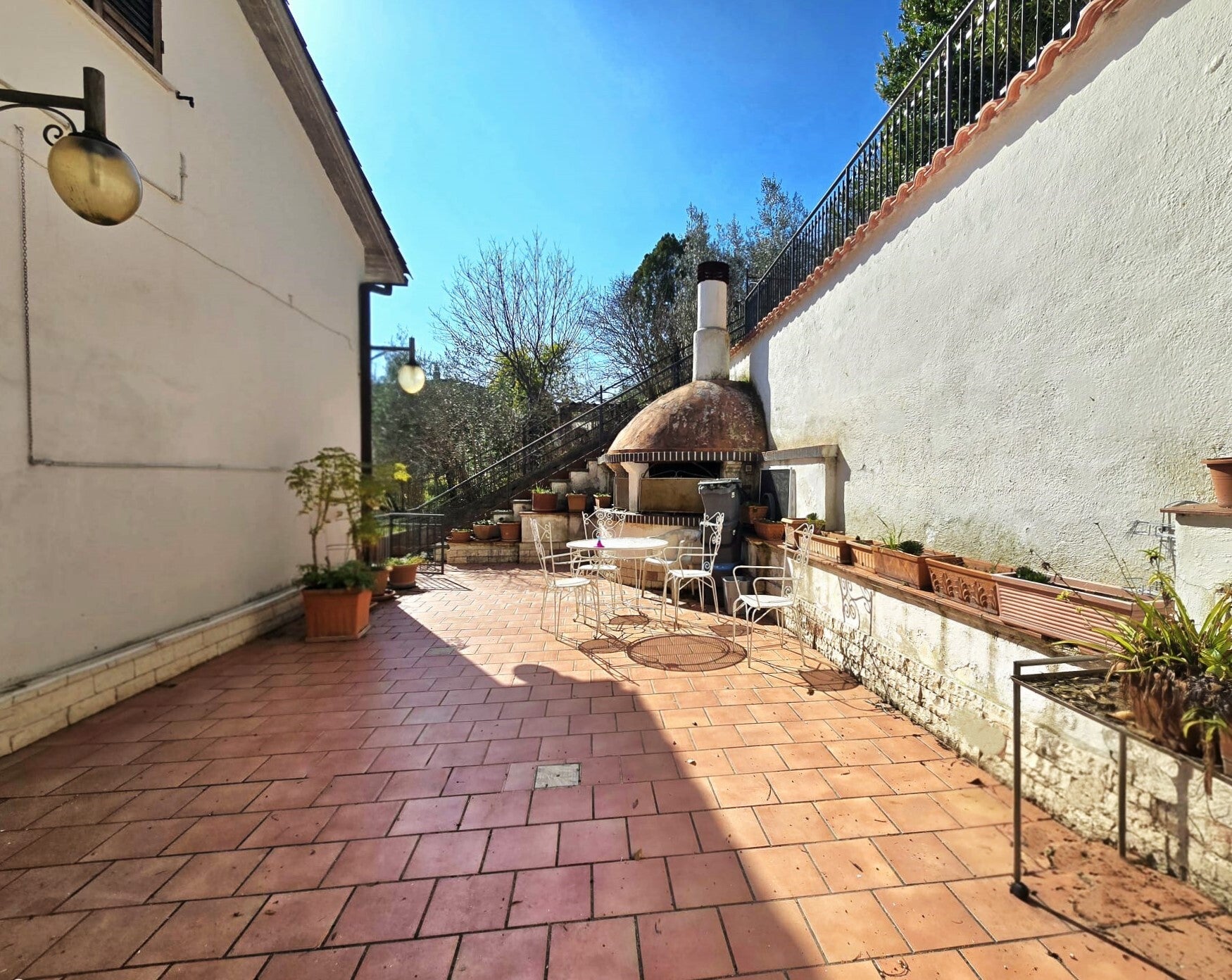 L’immobile è completo di garage al piano terra di 60mq. Tutta l’abitazione è abbracciata dal giardino di proprietà, principalmente terrazzato e pavimentato con alcune aree verdi adorante da una fontana, piante e alberi.